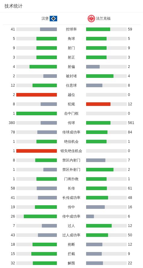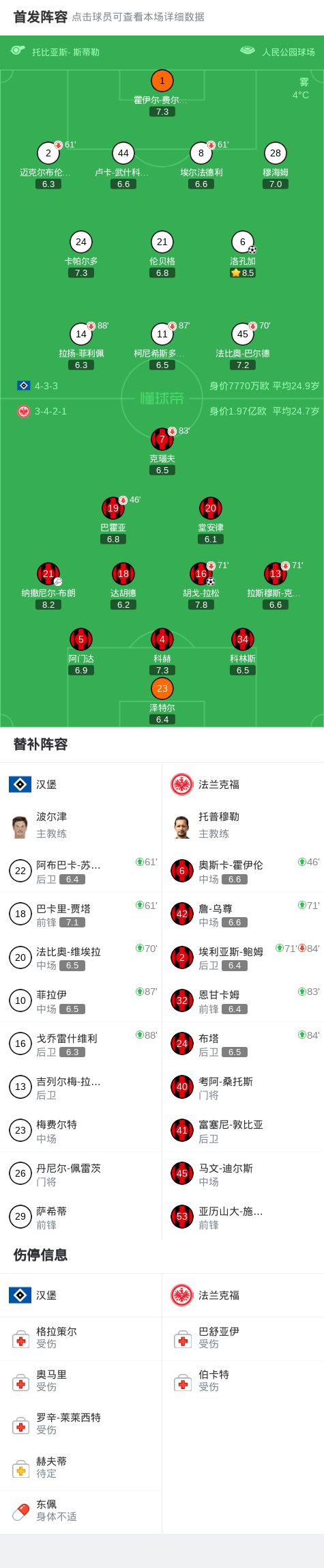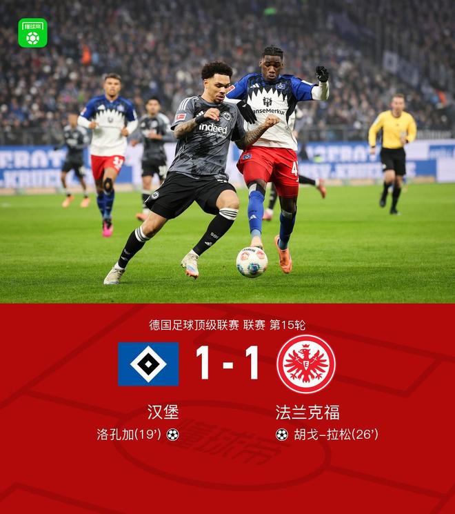 汉堡1-1法兰克福,洛孔加破门,胡戈-拉松扳平