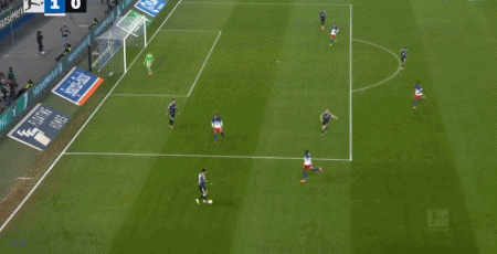 第18分钟,科林斯传球失误送大礼,洛孔加低射破门,汉堡1-0法兰克福
